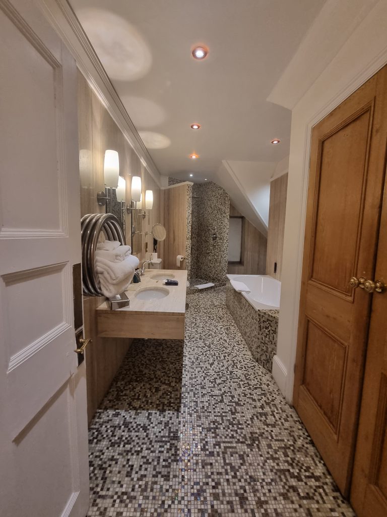 I think we all have a certain expectation of staff in a 5-star hotel, and I’m happy to say the staff at South Lodge exceeded my expectations. They are friendly and courteous, demonstrating this throughout our stay, making me feel incredibly special. When we arrived in our room to find a box of chocolates and a card wishing me a Happy Birthday. Within 5 minutes of us arriving in our room, there is a tap at the door. I open it to see a member of staff cradling an ice bucket containing a bobbing bottle of prosecco. My initial thought was that my husband had arranged this. Surprisingly, it was a complimentary bottle provided by the hotel in celebration of my 40th birthday. Which, of course, made it taste even better.