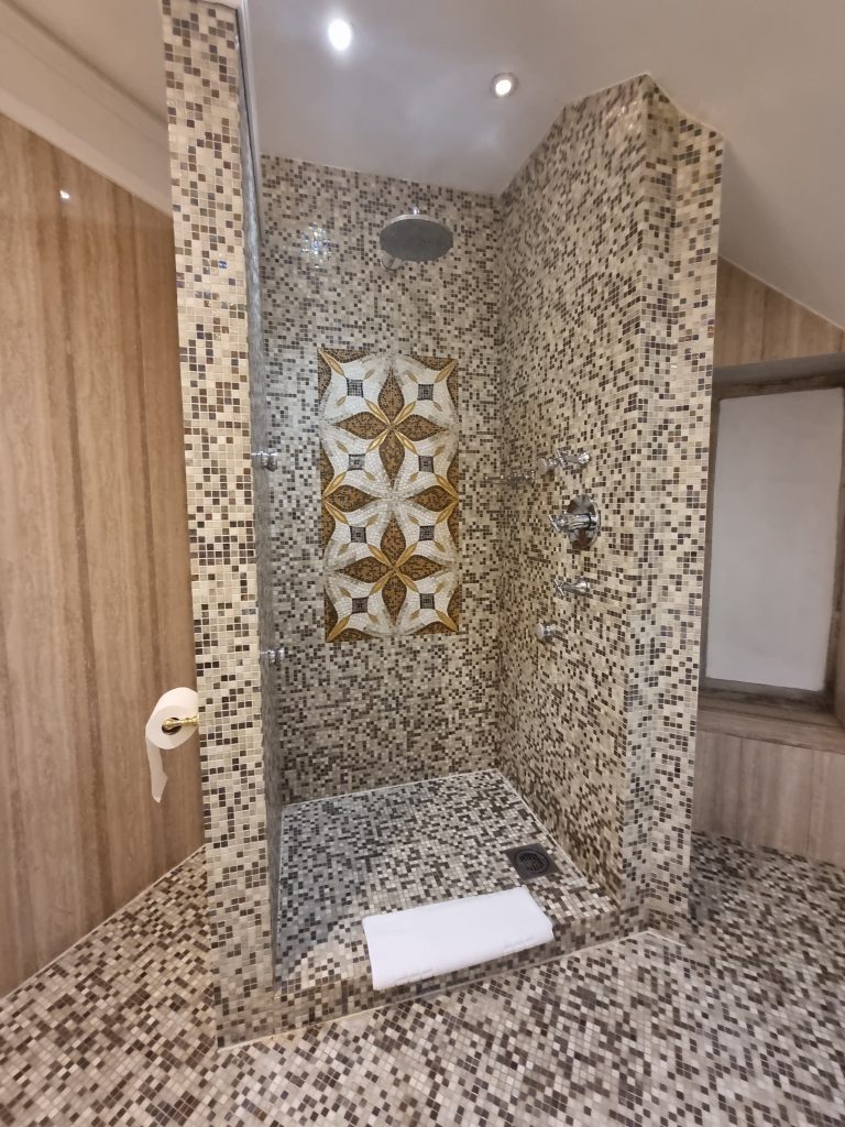 A close second was our bathroom. Holy smokes. It felt special and unique. The magnificent, tiled shower is the focal point of the bathroom. However, there is something rather indulgent about laying in a bath of bubbles watching an episode of Frasier while you await your breakfast.