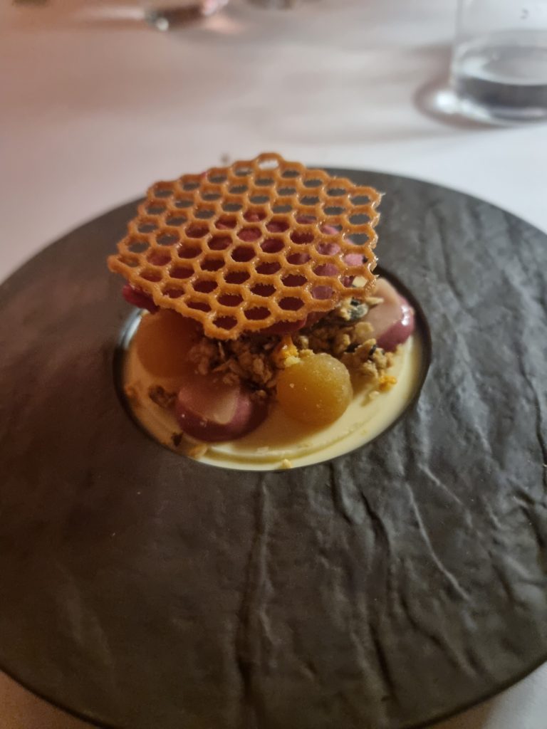 The standout course for me was the dessert. It was made up of many elements, including white chocolate panna cotta and beetroot sorbet. They say you eat with your eyes, and we were blown away by the presentation of the dishes, alongside stunning flavours.