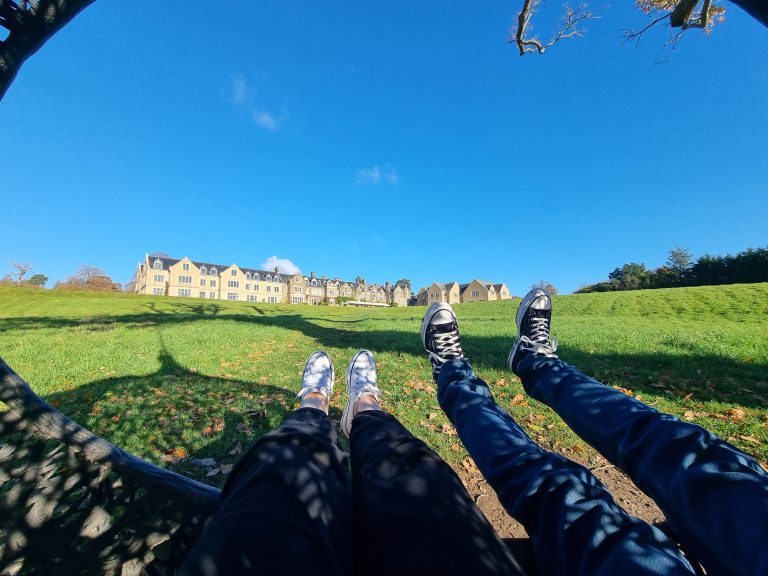 South Lodge Hotel and Spa is surrounded by a whopping 92 acres of Sussex countryside. Its grounds include a hidden rockery, wildflower meadow, natural swimming pond, and their very own vineyard. All of this is yours to explore at your leisure, with a map of the many paths you can take throughout the gardens. A sumptuously large swinging chair hangs from a tree in the gardens. We could sit here all day watching the world go by. There is an incredible peacefulness at South Lodge Hotel.