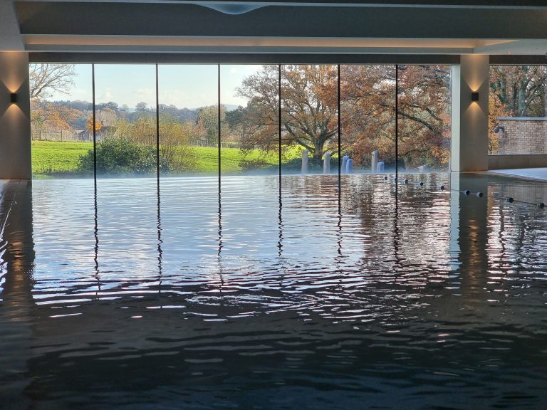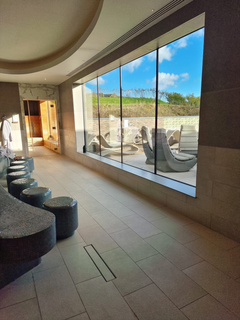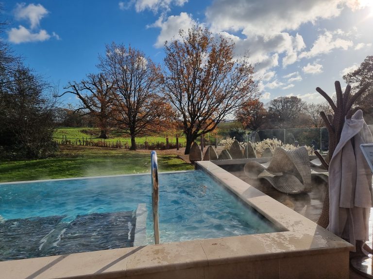 Now onto the spa itself. South Lodge has all the facilities you would expect from a modern spa and more. Every element of the spa has a sense of luxury and indulgence. My favourites are the beautifully crafted sauna, outdoor hydrotherapy pool, and wild swimming pool. All of which allow you to enjoy the stunning surroundings. But, be aware there’s a slight time delay on the buttons that turn on the jets in the hydro pool. We made the mistake of pressing them all and turning the jets on all over the pool, shocking a few of our fellow swimmers. Whoops.